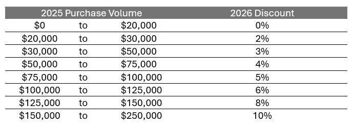 A tiered discount program for Garden Centers, Landscape Contractors, Horticultural Re-wholesalers, and Nurseries. Your current year savings are based on last year’s purchases—earn more as you grow with us!